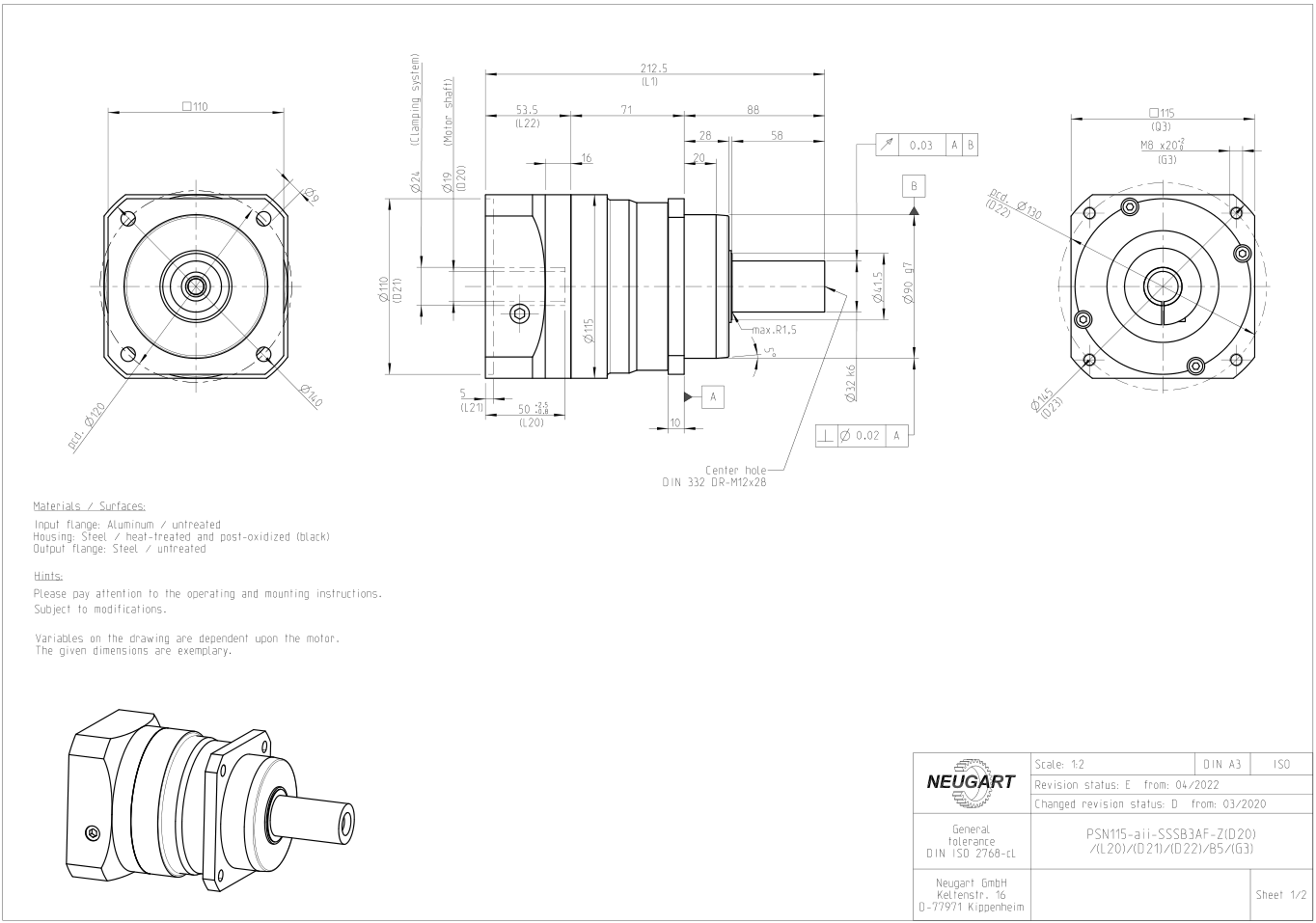 PSN精密行星減速機尺寸圖紙: