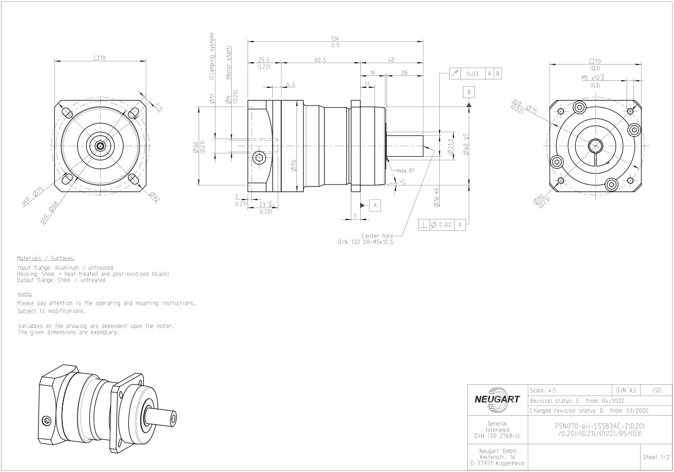NEUGART series PSN helical gear precision planetary gearbox adopts high-precision helical gear. This gearbox can realize synchronous operation with low noise. The gear meshing precision of this gearbox is high, and the return clearance is 1-5arcmin. Need to be less than 1arcmin. When the PSN gearbox is working, the vibration is reduced under the condition of high bearing load, which can improve the machining quality of the surface workpiece. The whole series of PSN gearbox drawings, CAD drawings, 3D models and other drawings can be downloaded online, providing the required data parameters, dynamic data and load diagrams when the whole system is in motion.